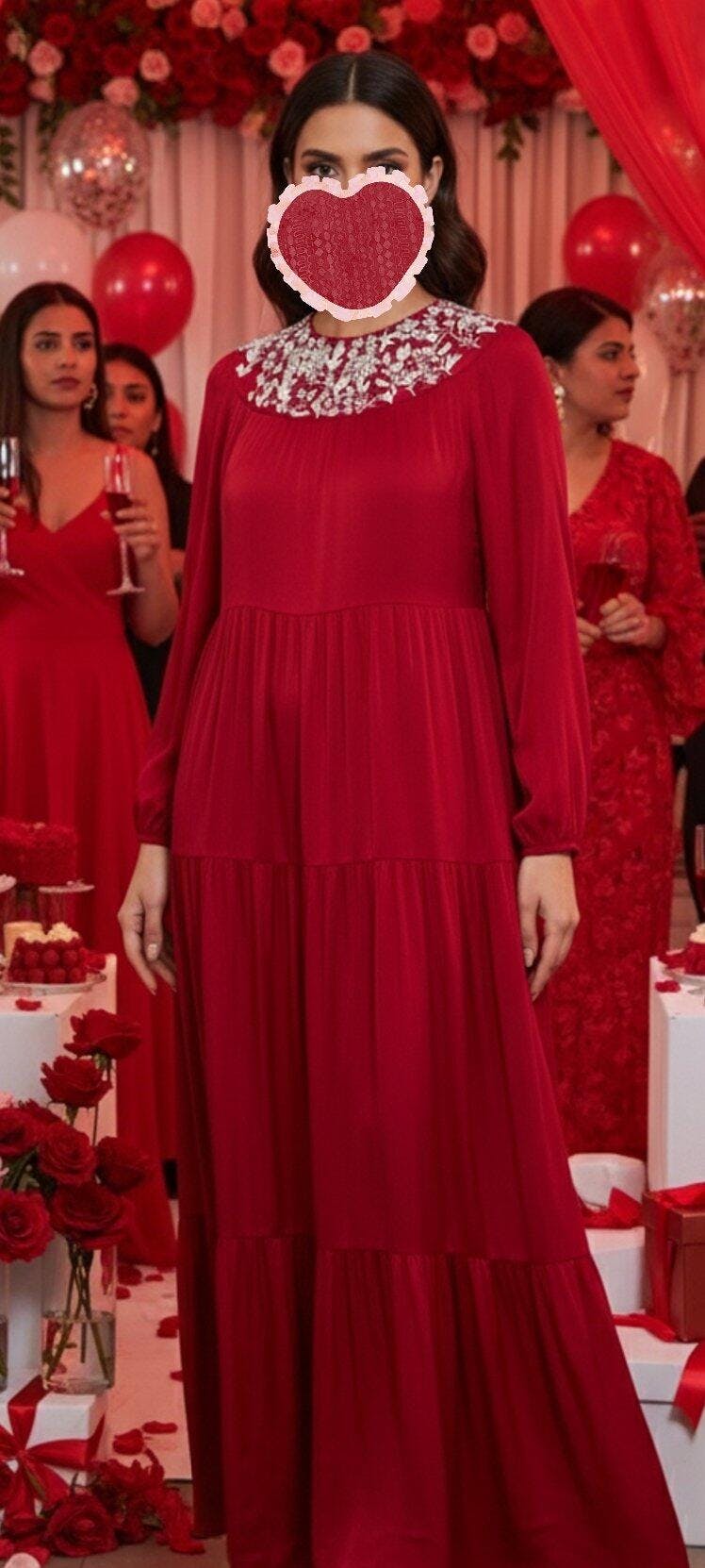 I wore this beautiful jalabiya from Alizay Saad at a bridal shower, and everything matched the red theme ❤️✨ I felt so elegant, and everyone loved the look! The fabric and design are excellent 👗🩷 Thank you, Alizay Saad 👐