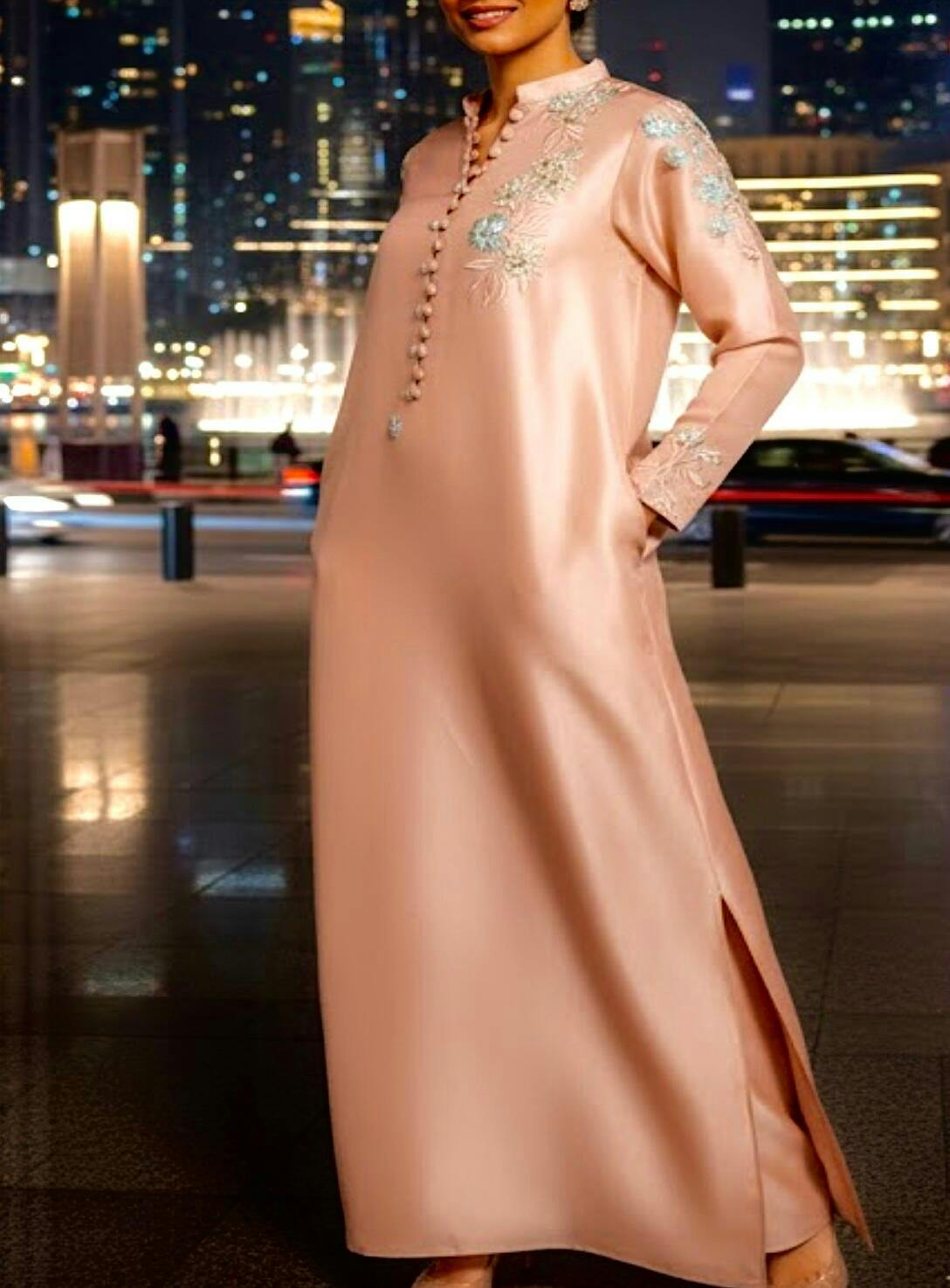 Inspired by the charm of quiet elegance, Muse Luxe 2025 redefines modern luxury and timeless grace. Crafted from premium silk fabric and enhanced with hand-embellished detailing, this abaya captures the essence of sophisticated simplicity and feminine strength. Designed for women who admire elegance that speaks softly yet powerfully.